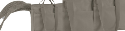Recycled 600D polyester. Water repellent fabric.Lightly padded.Carry handles (35cm long).Shoulder straps (85cm long).Large main zip compartment.Internal zip pocket.Front zip pocket.Side pockets.Tear out label.Capacity 32 litres.