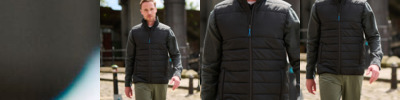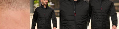 - 3L Softshell, with warm grid fleece backing and water repellent finish