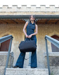 - Padded back made of sweat wicking mesh with trolley sleeve