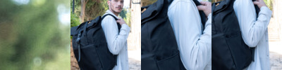 100% organic cotton canvas. Premium heavyweight fabric. Carry/shoulder straps (72cm long). Contrast panel. Framed stitch detail. Cut out label. Capacity 32 litres.