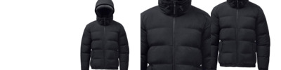 290T polyester outer. Polyester padding. Collar high full length nylon zip and pull. Two front zip pockets. Two inner pockets. Hanging loop. Elasticated bound armholes and hem. Tear out label. Packs away into storage bag.