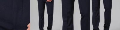 64% polyester/34% viscose/2% Lycra® elastane. Material made from 30% recycled polyester (in transition). Slim fit. Flat front. Belt loops. Zip fly with button over. Two side pockets. Rear pocket. Machine washable.